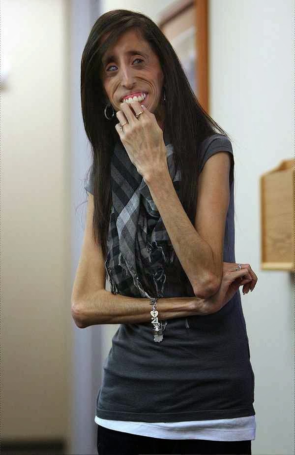 Lizzie sufre una muy rara enfermedad, tan solo se conocen otros dos casos más en el mundo, enfermedad que no tiene ni nombre, ella la llama síndrome de los huesos flacos. Carece por completo de tejido adiposo. No tiene grasa. Tiene que consumir unas 5.000 calorías al día en pequeñas comidas. No gana nada de peso. Cuando nació, el médico le dijo a su madre que no esperara mucho de ella, que tal vez no pudiera moverse y quizá no podría ni pensar.